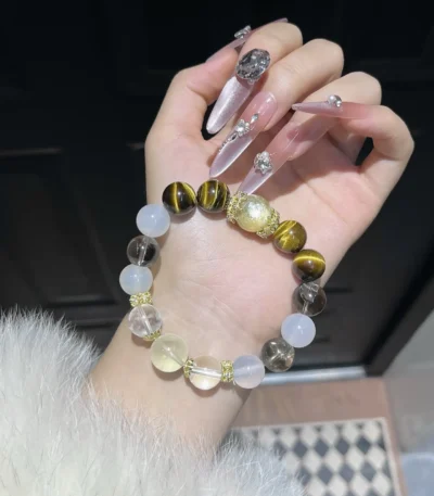 Tiger eye stone, white agate, gold lithium mica, white crystal, lemon yellow water tea crystal, 12mm